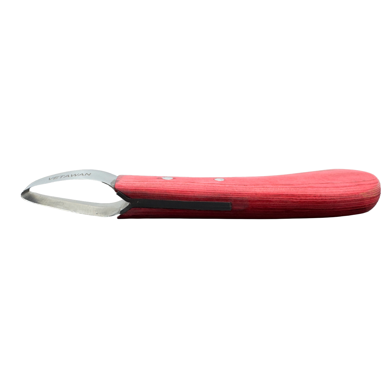 The double edge hoof knife is ideal for precise cutting and shaping of the hoof. Thanks to the robust stainless steel blade and ergonomic wooden handle, it is comfortable to use, even in hard-to-reach places. Perfect for professional use by farriers.